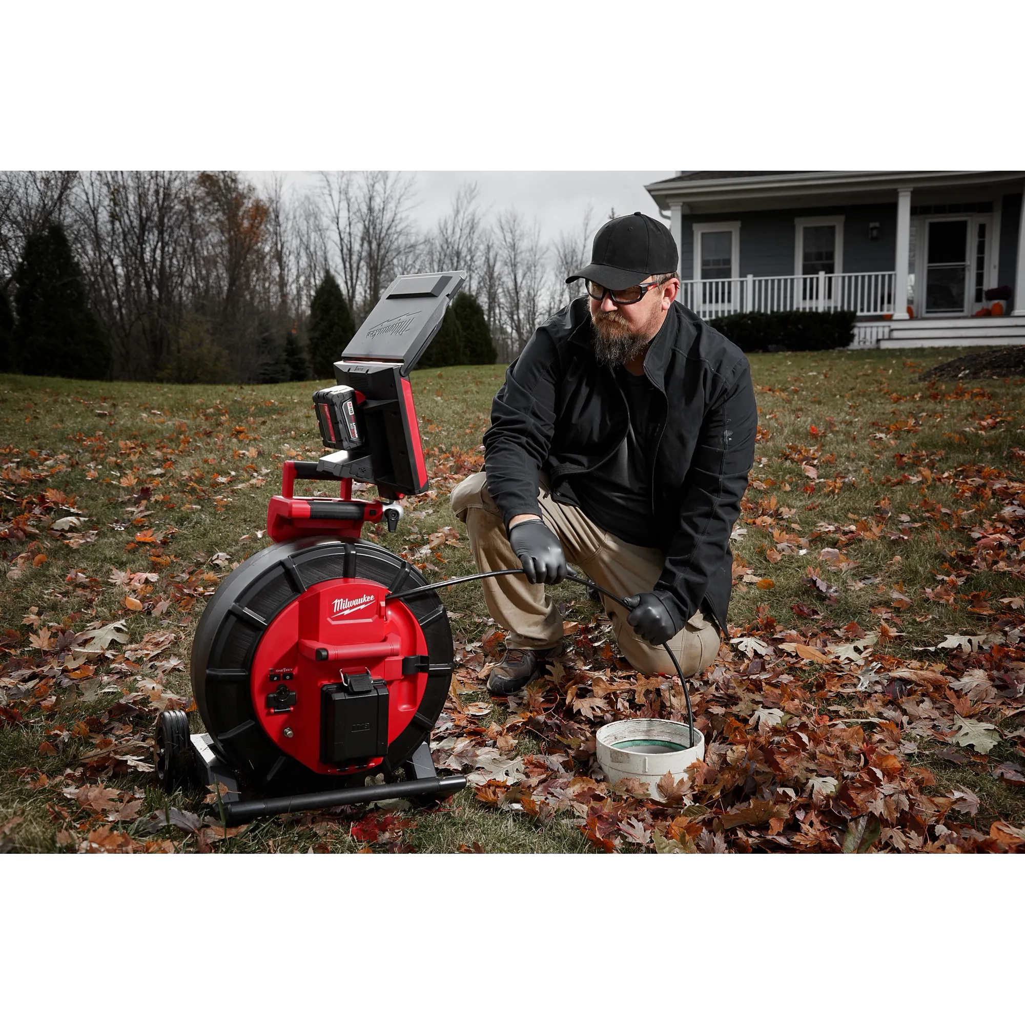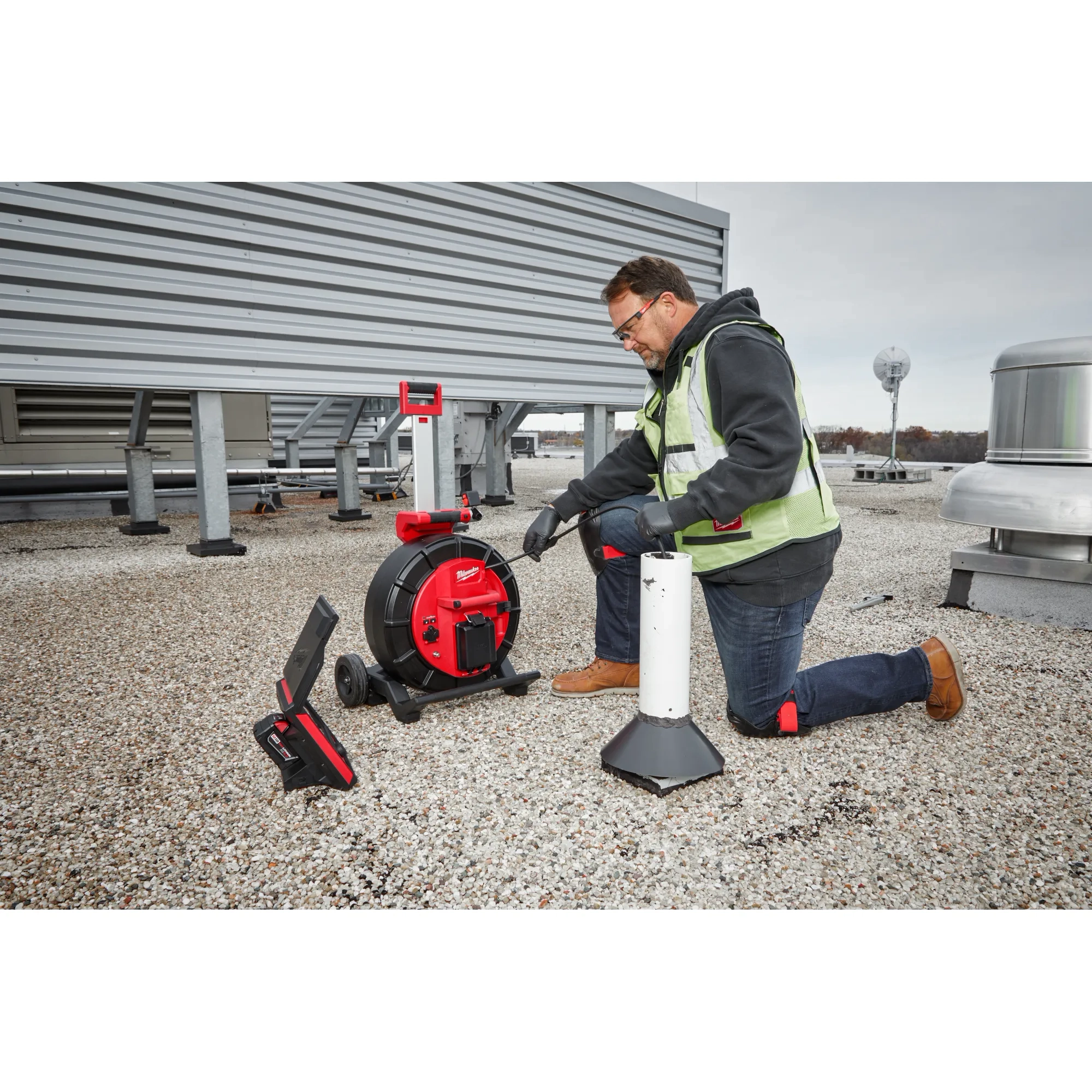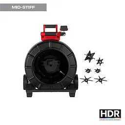 Our 200’ Mid-Stiff Pipeline Inspection Reel has a moderately stiff push cable providing a good balance of distance and the ability to navigate bends in 2”-6” lines. The inspection reel is powered by the M18™ 500 GB Control Hub, part of the M18™ Modular Pipeline Inspection System. Featuring the industry’s shortest 25 mm HDR self-leveling camera head, and the ability to digitally zoom up to 4X and optimize light output inside of pipes, technicians can now see more in drain lines than ever before. Our HDR self-leveling camera heads allow you to see both up close and further down the line with superior clarity, reducing washed-out areas and highlighting detail in dark conditions. Our pitch sensing feature reads and displays pitch on screen for easier diagnosis and more effective reporting. Our system features a telescoping handle and wide wheelbase making transportation on and off the job site easier than ever. Each reel includes a camera head sleeve to protect the camera from impact and skids designed to center the camera in pipes.