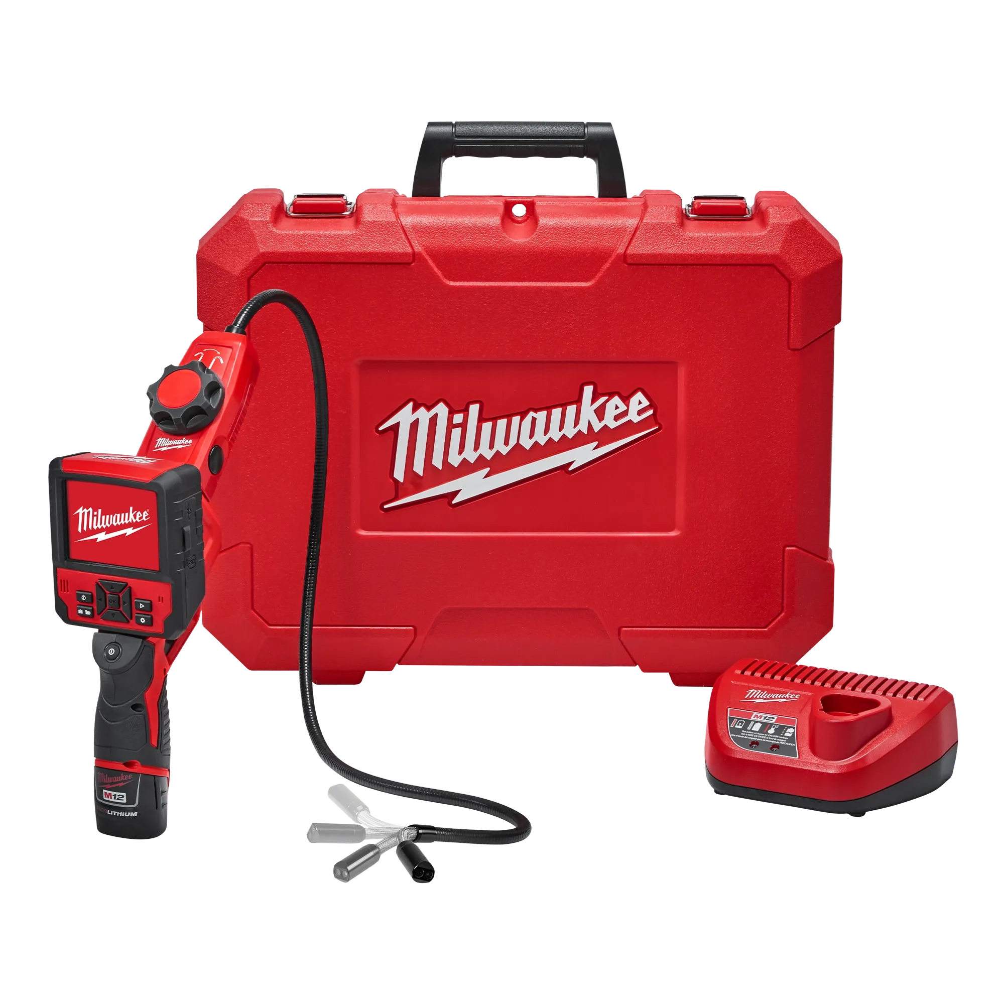 Our M12™ M-SPECTOR FLEX™ Inspection Camera Cable W/ PIVOTVIEW™ Kit is the only contractor inspection camera that gives you full control positioning the camera head with its exclusive PIVOTVIEW™ cable. With the turn of a dial, it’s 270⁰ camera head motion eliminates the frustrations of bending, feeding, and positioning standard camera cables to look in different directions. The inspection cable attaches in four different positions allowing you to inspect in all directions and optimize the dial position. Leveraging state-of-the-art LED technology, you get 15X greater LED brightness for seeing further and more clearly in large, dark spaces. The 12.5mm (.49”) diameter and shortened camera head length give you greater access to tight spaces than 17mm cameras. A 3.5” wireless LCD console allows you to comfortably view images in any position. Capture best-in-class photos or videos on an SD card for easy documentation of warranty claims or service work for customers. The MILWAUKEE® M12™ M-SPECTOR FLEX™ Inspection Camera Cable W/ PIVOTVIEW™ Kit is perfect for remodel inspections, facility maintenance, machinery and production lines, and residential or commercial trades where documenting inspections are essential.