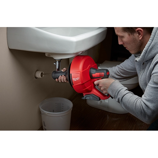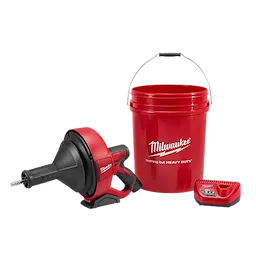 Our M12™ Drain Snake Kit is the ultimate service plumbing solution for tough jobs through 2-1/2 inch drain lines.It weights only 10 lbs. and is the lightest professional drain cleaner on the market. Its unique, hybrid design provides you with the benefits of both handheld and floor based drain cleaners in one machine. The tool’s fixed drum shield with flat base protects you and fixtures while providing maximum tool support for easy cable feed. Plumbers, facility maintenance, and property managers will eliminate setup time when they switch from their corded drain cleaning machines to the MILWAUKEE® M12™ Drain Snake. The drain snake is powered by REDLITHIUM™ Battery Pack giving you more work per charge and more work over pack life than the competitors. REDLINK™ Intelligence provides optimized performance and overload protection against abusive situations. In addition to the drain auger, this kit includes a 5/16” X 25’ bulb cable, one M12™ REDLITHIUM™ CP1.5 battery pack, and an M12™ Lithium-Ion battery charger and 5 gallon drain snake storage bucket..
