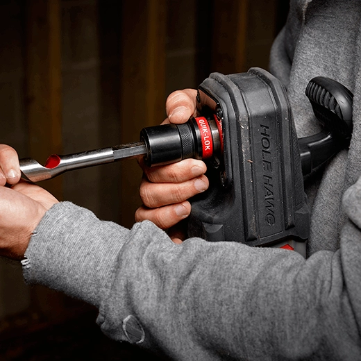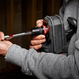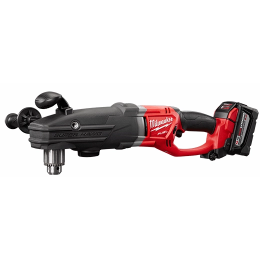The M18 FUEL™ HOLE HAWG® Right Angle Drill from Milwaukee drills faster than the original corded HOLE HAWG®, delivers over 150 7/8" Holes Per Charge, and is over 30% lighter weight than its corded predecessor. The QUIK-LOK™ chuck is designed for quick, keyless, one-handed bit changes and is compatible with 7/16” Hex flat or groove shank bits. Optimized for electricians, the M18 FUEL™ HOLE HAWG® is the first cordless tool of its kind, delivering game-changing productivity for professionals drilling with augers up to 1-1/4" and self-feed bits up to 2". The POWERSTATE® brushless motor delivers better performance than corded drills, especially under heavy load. REDLINK PLUS™ Intelligence is the most advanced electronic system on the market, preventing damage to the tool and battery caused by overloading or overheating. The REDLITHIUM™ batteries provide up to 2.5X more run time and recharges than standard lithium, operate down to 0*F/-18*C. and have a battery fuel gauge to display the remaining charge.