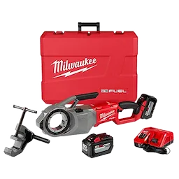 Our M18 FUEL™ Pipe Threader w/ ONE-KEY™ is the industry’s first cordless pipe threader, revolutionizing the pipe threading process. The cordless pipe threader features AUTOSTOP™ technology that senses severe kickback and automatically shuts the tool off. It also has a die head lock preventing die head ejection and a side handle to eliminate the need for you to hold the spinning die head when starting threads. The portable pipe threader delivers unmatched tool control and functionality and allows you to thread faster than the corded competition. Featuring a multi-speed selector, this powerful pipe threader threads faster than corded competitors, maximizing your productivity without compromising thread quality. Our M18™ REDLITHIUM™ HIGH OUTPUT™ HD12.0 battery delivers unmatched run-time in all applications and gives you the power to thread up to 2” black iron pipe, stainless steel, and rigid metal conduit (RMC). The handheld pipe threader is compatible with ONE-KEY™ Technology and is the industry's first pipe threader that wirelessly connects to a smartphone to track the tool's location, manage it in inventory, and lock the tool out for added security and protection to your investment. In addition to the threader, the kit includes two M18™ REDLITHIUM™ HIGH OUTPUT™ HD12.0 Battery Packs, an M18™/M12™ Rapid Charger, a Threading Support Arm, and a Carrying Case.