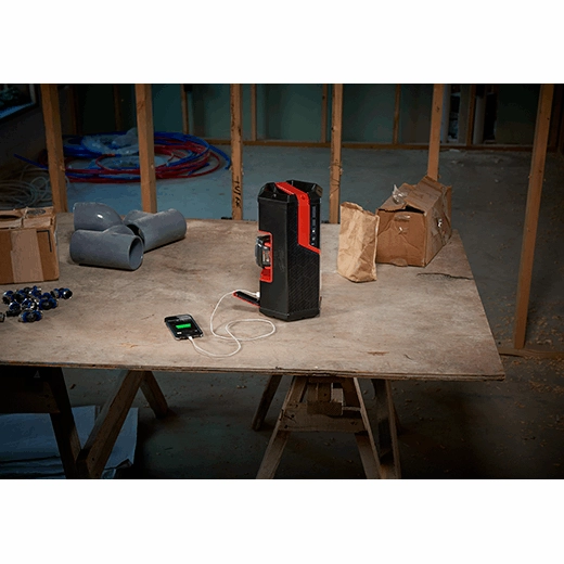 The Milwaukee® M18™/M12™ Wireless Jobsite Speaker delivers the loudest and clearest sound on or off the jobsite. The premium six speaker design provides unmatched clarity of sound with booming bass, clear mids, and sharp highs. Paired with a 40W dual channel digital amplifier, the speaker produces big sound to fill any room or work environment. Nothing But Heavy Duty™ construction features impact resistant side caps and a reinforced honeycomb grill to withstand drops and abuse. The latest Bluetooth® technology ensures easy pairing with a smart phone, tablet, or other mobile device from up to 100ft away. Compatible with all M18™ and M12™ Batteries or able to run off of AC power, the M18™/M12™ Wireless Jobsite Speaker maximizes versatility, functionality, and performance to set a new standard in high-definition jobsite sound.