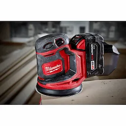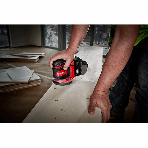 The M18™ 5” Random Orbit Sander delivers corded power with 12,000 Max OPM output. The 7,000-12,000 variable speed dial allows the user more control over the output of the tool to match the orbit speed for the application. The tool’s powerful motor allows the user to remove more material per battery charge. The M18™ Random Orbit Sander powered by REDLITHIUM™ battery technology delivers up to 35 minutes of run-time on a M18™ 3.0Ah Battery Pack.