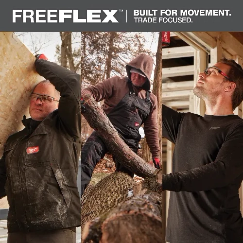 Movement is essential on the job. MILWAUKEE® FREEFLEX™ workwear is designed to provide enhanced range of motion with materials that are purposefully engineered for stretch and flexibility. Custom construction features, such as gussets and seam design, enable users to move freely and comfortably while working. These technical movement garments are developed in collaboration with feedback from real users across the trades through continuous jobsite research.