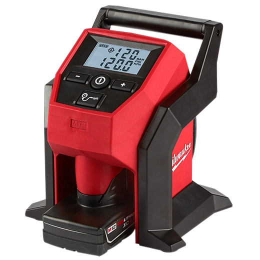 GONFLER LE PNEU SANS CORDON LE PLUS RAPIDE. Le gonfleur compact Milwaukee® M12 ™ offre un gonflage rapide, précis et facile, avec une portabilité à emporter partout. Avec la capacité de réaliser des applications exigeantes comme les pneus de voitures, de camions LT et d'équipements compacts, le gonfleur compact M12 ™ offre aux utilisateurs une puissance et une efficacité inégalées. Évalué pour livrer plus de 120PSI, le moteur à haut rendement et pompe top-off pneus en moins de 1 minute. La technologie d'arrêt TrueFill ™ Auto délivre une pression très précise, protège contre les débordements et détecte automatiquement la vitesse de remplissage pour fournir une coupure précise au niveau de pression désiré. En outre, l'unité comprend un grand écran LCD rétro-éclairé facile à lire, des pieds anti-vibration et un tuyau de 26 "avec un mandrin Schrader tout en laiton.