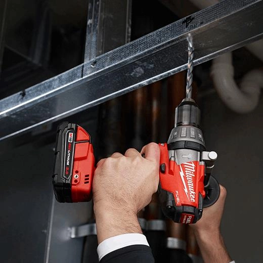 Le marteau perforateur/visseuse M18 FUELMC est l'outil sans fil de 18 volts le plus puissant dans sa catégorie.Ce marteau perforateur/visseuse léger et polyvalent offre une durée de vie du moteur jusqu'à 10 fois plus longue, une autonomie 2 fois plus grande et 25 % plus de puissance pour le rendement maximal sur le terrain. Le moteur sans balai POWERSTATEMC surpasse la puissance des concurrents, et il fonctionne à température plus basse sans composants qui peuvent s'user. Le bloc-piles M12 REDLITHIUMMC produit plus de travail par charge et par bloc-piles que les blocs-piles des concurrents. Sa taille et son poids réduits préviennent la fatigue de l'utilisateur, alors que l'indicateur de charge embarqué vous aide à contrôler la charge précisément afin de réduire les temps morts. La technologie intelligente REDLINK PLUSMC garantit la performance maximale et la protection contre la surcharge, la surchauffe et la décharge excédentaire.  Le mandrin à cliquet entièrement métallique du marteau perforateur/visseuse M18 FUELMC offre une prise, une rétention de foret et une durabilité maximales. Le marteau perforateur/visseuse produit 31 450 coups/min pour les applications de perçage rapide dans la maçonnerie. La nouvelle poignée profilée matelassée assure le confort par excellence lors de l'utilisation prolongée. L'ensemble comprend le nouveau chargeur multitension afin que puissiez charger toutes les batteries au lithium-ion M12 et M18 avec un seul chargeur.