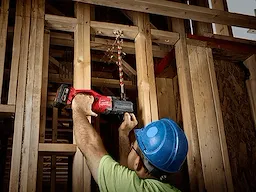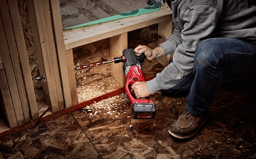 La perceuse à angle droit M18 FUELMC HOLE HAWGMD de Milwaukee perce plus rapidement que la perceuse HOLE HAWGMD à cordon, produit plus de 150 trous de 7/8 po par charge et pèse 30 % moins que son prédécesseur à cordon. Le mandrin QUIK-LOKMC est conçu pour les changements de mèche rapides, sans clé et d’une seule main, et il est compatible avec les mèches à tige hexagonale ou rainurée de 7/16 po. Optimisée pour les électriciens, la perceuse M18 FUELMC HOLE HAWGMD est le premier outil sans fil en son genre, procurant une productivité révolutionnaire pour les professionnels utilisant des mèches de tarière allant jusqu’à 1 1/4 po et des mèches à autoavance jusqu’à 2 po. Le moteur sans balais POWERSTATEMC produit une meilleure performance que les perceuses à cordons, particulièrement sous charge intensive. Le circuit REDLINK PLUSMC Intelligence est le système électronique le plus avancé sur le marché empêchant les dommages à l’outil et à la batterie causés par la surcharge ou la surchauffe. Les batteries REDLITHIUMMC XC5.0 procurent jusqu’à 2,5 plus d’autonomie et de recharges que les batteries au lithium ordinaires, peuvent fonctionner jusqu’à 0 °F/-18 °C et sont munies d’un indicateur de charge de la batterie affichant la charge restante.