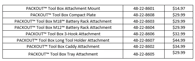 « Nos utilisateurs ont divers besoins sur le chantier, comme les outils à main ou les batteries. Ces accessoires pour boîtes à outils faciliteront l'accès à ce type d'outils, transformant les piles de nos utilisateurs en une véritable station de travail mobile. » explique Matt Vargo, vice-président du marketing produit chez Milwaukee Tool. Il ajoute : « En travaillant sur le terrain avec des professionnels, nous avons constaté qu'il existait un besoin d'innovation pour aider les utilisateurs à transporter des outils plus volumineux, tels que des niveaux, des cintreuses de conduits ou d'autres solutions plus longues qui ne rentrent pas dans les boîtes à outils. Les accessoires de la boîte à outils les stockeront à l'extérieur des piles, ce qui réduira le nombre d'allers-retours entre les fourgons ».