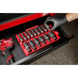 Notre jeu de douilles SHOCKWAVE Impact DutyMC est caractérisé par les marquages les plus durables et fait preuve d'une résistance extrême aux chocs dans les applications à couple élevé. Les marquages de taille au tampon et remplis d'encre vous permettent de choisir à chaque fois la douille appropriée tout au long de la vie de la douille. Fabriquées avec de l'acier forgé à haute résistance pour optimiser leurs performances dans les applications usage intensif. Nos jeux comportent des plateaux amovibles compatibles avec nos organisateurs PACKOUTMC et s'adaptent aux tiroirs des coffres à outils. LA géométrie hexagonale antidérapante permet d’éviter d'’arrondir la fixation. Notre conception à deux trous et une rainure d’anneau facilite la pose et la dépose des douilles. Toutes les rallonges et douilles MILWAUKEEMDSHOCKWAVE Impact DutyMC sont couvertes par notre garantie à vie et sont conformes aux normes ASME de l'industrie.