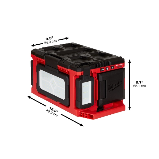 Our M18™ PACKOUT™ Light/Charger provides you with all day multi-directional lighting and charging. This portable light delivers 3000 Lumens of TRUEVIEW™ High Definition Output and is fully compatible with the PACKOUT™ Modular Storage System. Three independent rotating light heads allow for complete control over lighting direction whether you're using it on your PACKOUT™ stack or as a dedicated light off the stack. You can manage output and runtime on this portable work light with three different modes (All Lights, Main Panel, or Back/Front Lights), each including high, medium, and low settings for up to 31 hours of runtime with one M18™ REDLITHIUM™ XC 5.0 Battery. There is an AC input for all day runtime and M18™ Battery charging. This MILWAUKEE® PACKOUT Light allows you to charge devices with the 2.1AMP USB output and store small items inside the storage compartment.