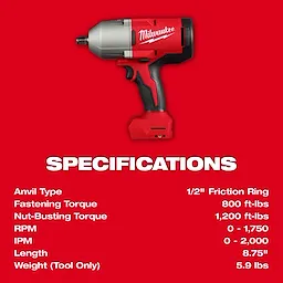 Up to 800 ft-lbs of fastening torque & 1,200 ft-lbs of nut busting torque