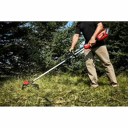 Our M18™ Brushless String Trimmer delivers you more clearing power and a larger cutting swath than battery-powered competitors. The brushless motor was built and optimized specifically for trimming applications and provides up to 6,200 RPM. Paired with REDLINK™ Intelligence and an M18™ REDLITHIUM™ HIGH OUTPUT™ battery, the trimmer provides efficient power delivery, providing you with longer run-time. The trimmer features high and low speed settings with a variable speed trigger. High-speed provides the power to take on demanding applications, and low-speed maximizes run-time while having plenty of power for grass trimming. The 16" cutting swath trims more grass in a single pass, which increases your productivity. The Easy Load Trimmer Head delivers an easy line loading experience and the ability to load up to 25' of trimmer line in under 30 seconds. This MILWAUKEE® cordless string trimmer is a part of the M18™ System, which is fully compatible with over 200 solutions.