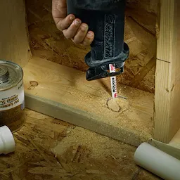 Fang Tip delivers fast plunge cutting through bottom plates and subfloors.