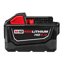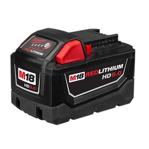 The M18™ REDLITHIUM™ HIGH DEMAND™ 9.0 Battery Pack delivers up to 5X more run-time, 35% more power, and runs 60% cooler than standard 18V lithium-ion batteries.  The battery is best optimized for high draw products and sustained run-time applications, and it provides the next, large step towards full corded replacement when paired with the M18 system of solutions.  It maintains full power and runs substantially cooler through heavy applications, allowing users to push their cordless tools harder and longer than ever before.  The M18™ REDLITHIUM™ HIGH DEMAND™ 9.0 battery is fully compatible with 100+ M18™ tools.