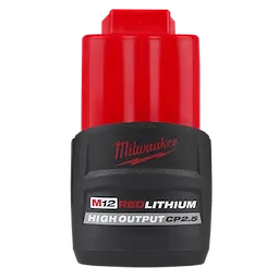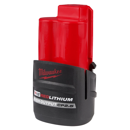 Our M12 REDLITHIUM™ HIGH OUTPUT™ CP2.5 Battery Pack delivers 25% more power and runs 25% cooler than our other M12 REDLITHIUM™ CP battery packs. This increased performance of the lithium-ion battery gives you the same power and runtime of an M12 REDLITHIUM™ XC battery in a lighter and more compact package. The 12-volt battery pack delivers fade-free power and runs substantially cooler through demanding applications, allowing you to push your cordless power tools throughout a wide range of applications. Its compact, lightweight design allows you to work in tight workspaces and reduces fatigue. Each battery pack is durably built for heavy-duty use, runs cooler, and performs in climates below 0°F/-18°C. In addition, the M12 REDLITHIUM™ HIGH OUTPUT™ CP2.5 is built with a resistant housing, providing increased protection against exposure to common oils, greases, and solvents found in automotive and manufacturing environments. Our M12 REDLITHIUM™ HIGH OUTPUT™ CP2.5 is fully compatible with 125+ M12™ solutions.