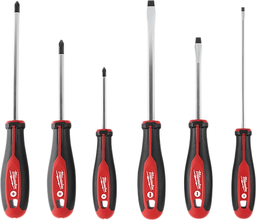 Phillips #1 x 3", Phillips #2 x 4", Phillips #2 x 6", Slotted 1/4" x 4", Slotted 3/16" x 6", Slotted 5/16" x 6"