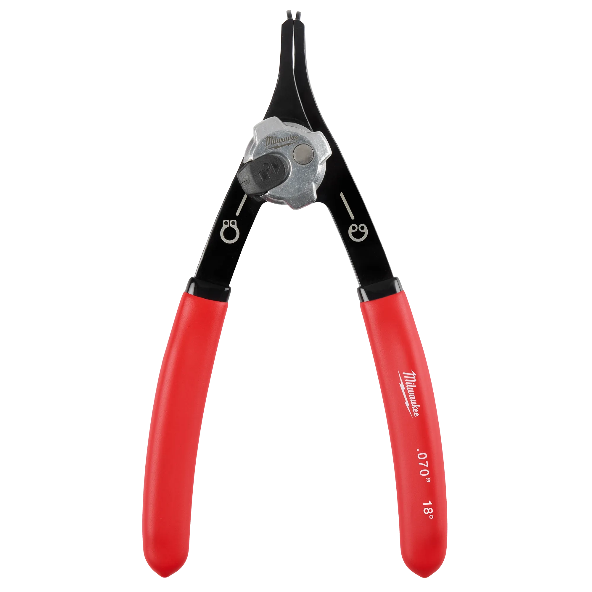 Our 0.070” 18⁰ Convertible Snap Ring Pliers features an all-metal dial that quickly switches between internal and external modes. The all-metal dial is more durable than competitors. The all-metal dial provides the ability to withstand harsh environments. The double dipped slip resistant grips withstand the harsh jobsite chemicals and abuse. Our Convertible Snap Ring Pliers are backed by a Limited Lifetime Warranty.