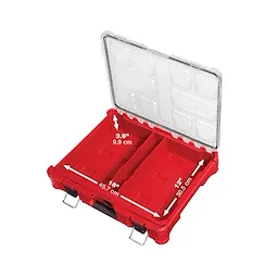 Our PACKOUT™ modular storage system is the industry's most durable and versatile storage system. The PACKOUT™ organizer is constructed with impact resistant materials so it can withstand harsh jobsite environments. An IP65 rated weather seal protects your tools, accessories, and small parts from rain and other jobsite debris. The organizer's interior features 10 removable storage bins that are easily mountable on the jobsite for quick access. The transparent lid of the organizer seals the bins to prevent contents from migrating and shifting during transport. Heavy duty latches and reinforced hinges ensure that the organizer keeps the contents contained and protected. Our PACKOUT™ modular storage allows you to customize and build your own storage system to easily transport and organize your tools and accessories.