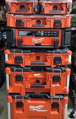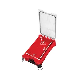 Our PACKOUT™ modular storage system is the industry's most durable and versatile storage system. The PACKOUT™ compact organizer is constructed with impact resistant materials so it can withstand harsh jobsite environments. An IP65 rated weather seal protects your tools, accessories, and small parts from rain and other jobsite debris. The small organizer's interior features 5 removable storage bins that are easily mountable on the jobsite for quick access. The transparent lid of the organizer seals the bins to prevent contents from migrating and shifting during transport. Heavy duty latches and reinforced hinges ensure that the compact organizer keeps the contents contained and protected. Our PACKOUT™ modular storage allows you to customize and build your own storage system to easily transport and organize your tools and accessories.