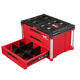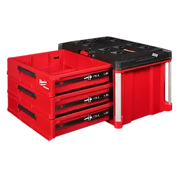 Our PACKOUT™ 3-Drawer Tool Box has a 50lbs weight capacity and a locking security bar that allows you to padlock the drawers closed keeping them securely shut during transport. As part of the PACKOUT™ Modular Storage, the toolbox allows you to customize your storage system for easy transportation and organization of tools and accessories. This portable toolbox with drawers is constructed with impact-resistant polymers, all-metal ball-bearing slides, and metal-reinforced corners for ultimate jobsite durability. The 3-Drawer Tool Box also allows you to customize your drawer layout with Quick-Adjust Dividers (Includes 1 set of dividers). The MILWAUKEE® PACKOUT™ Modular Storage System is the industry's most versatile and durable storage system.