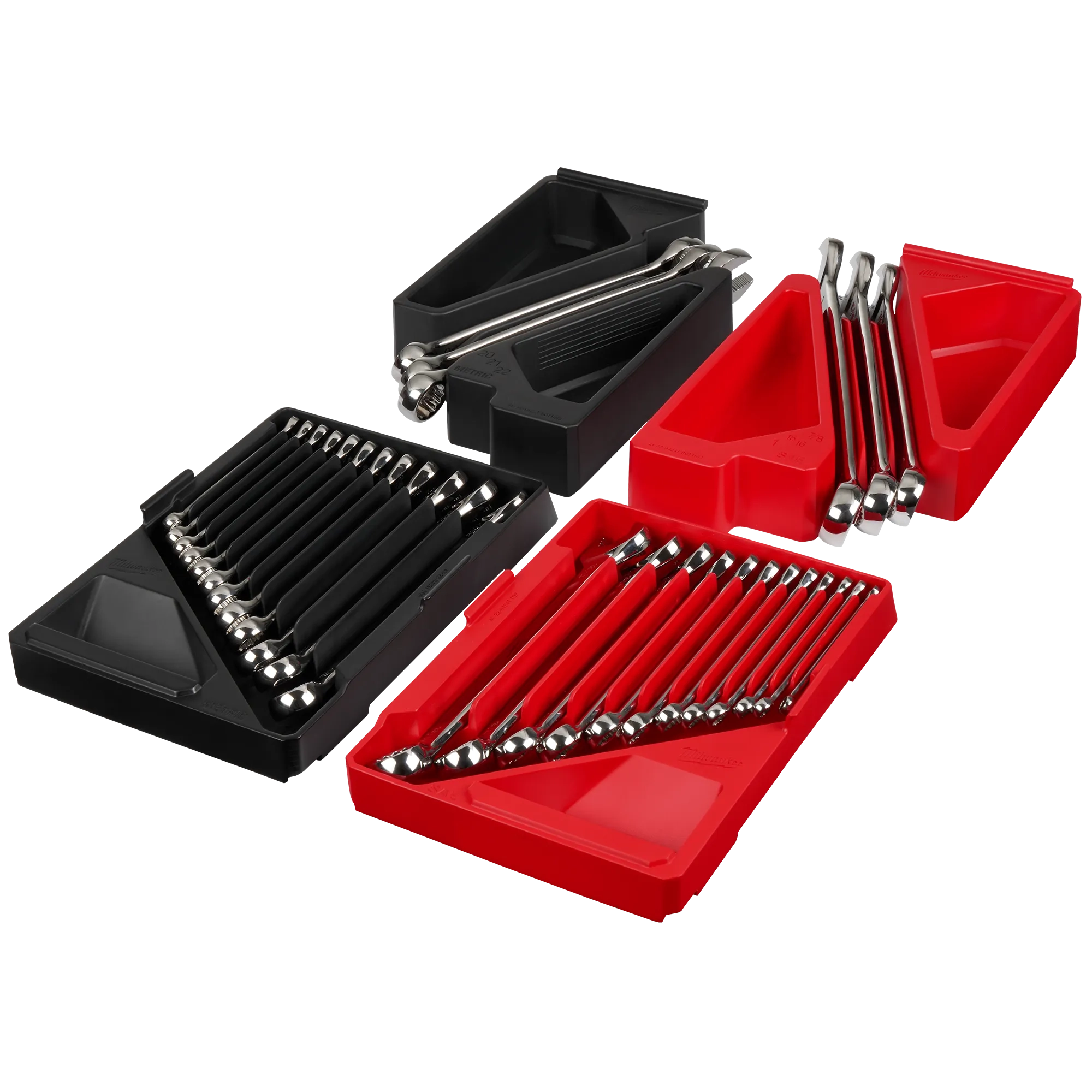 Trays Fits the Following Milwaukee SAE Combination Wrenches: 1/4", 9/32", 5/16", 11/32", 3/8", 7/16", 1/2", 9/16", 5/8", 11/16", 3/4", 13/16", 7/8", 15/16", 1"