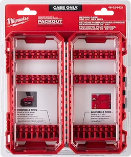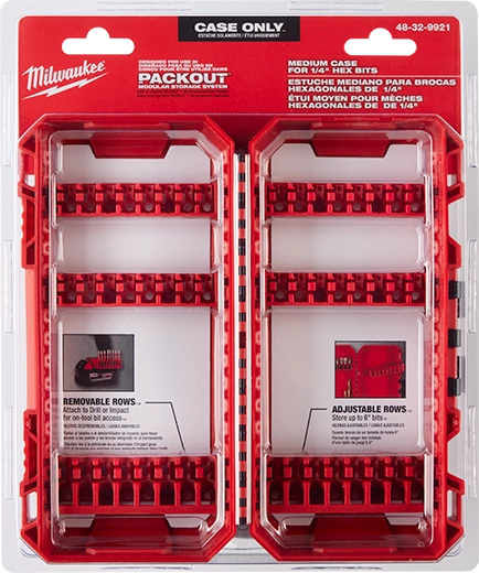 Adjustable rows fit ¼” hex bit shank accessories such as driver bits, drill bits, nut drivers, impact socket adapters, drive guides, etc