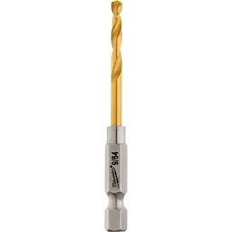 Milwaukee® SHOCKWAVE™ Impact Duty Titanium Drill Bits with RED HELIX™ are engineered for impacts and drills. Designed with a Variable Helix ™ with an aggressive 35° Helix Angle which ends at 15°, the Impact Duty Titanium Drill bits with RED HELIX™ provide Rapid Chip Removal™ to limit heat buildup to Stay Sharper Longer™. The 135° split point tip delivers a precision start and prevents walking for fast, accurate holes. Titanium coating can be used in all drilling applications to give you up to 3X life vs. Black Oxide Drill Bits™.