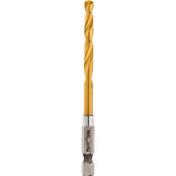 Milwaukee® SHOCKWAVE™ Impact Duty Titanium Drill Bits with RED HELIX™ are engineered for impacts and drills. Designed with a Variable Helix ™ with an aggressive 35° Helix Angle which ends at 15°, the Impact Duty Titanium Drill bits with RED HELIX™ provide Rapid Chip Removal™ to limit heat buildup to Stay Sharper Longer™. The 135° split point tip delivers a precision start and prevents walking for fast, accurate holes. Titanium coating can be used in all drilling applications to give you up to 3X life vs. Black Oxide Drill Bits™.