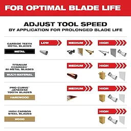 Carbide Teeth for up to 50x longer life vs bi-metal blades