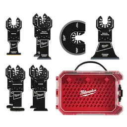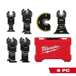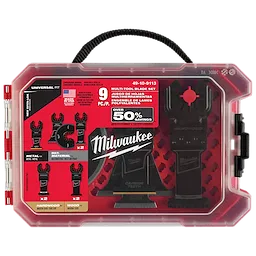 Our OPEN-LOK™ Multi-Tool Blade Variety Kit 9PC provides you with an assortment of blades for multi-material, hardwood and clean wood cutting applications. The set includes a Carbide Teeth metal blade that lasts up to 50X longer than standard bi-metal blades and can be used in a wide range of metal materials while maintaining longer blade life such as; screws, bolts, nails, and more. TITANIUM CHARGED™ Bi-Metal blades have an optimized titanium blend for maximum wear-resistance and up to 15x longer life vs. high carbon steel (HCS) blades. These bi-metal multi-tool blades are ideal for wood with nails, PVC, and drywall. The Triple-Ground Japanese Tooth hardwood blades deliver up to 2X faster cuts than the previous MILWAUKEE® HCS blades and features a PRO-CURVE™ cutting edge for greater control. The Japanese Tooth blades are ideal for fast, clean cuts in hardwood and can also be used in clean wood, PVC, and drywall. The set also includes high carbon steel (HCS) blades designed with aggressive, edge-ground teeth for fast wood cutting. These blades feature a reinforced Universal Fit OPEN-LOK™ anchor for better strength & control and allow for quick blade changes across 100+ multi-tools. Not compatible with Starlock tools. The set is organized in a hard case for storage. MILWAUKEE® oscillating multi-tool blades are designed and made in the USA with global materials.
