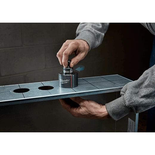 The M18™ 10T and 6T Knockout allow users to align the punches and dies without the awkwardness of balancing the tool. Reducing the tedious steps of hole making, improving the speed of the process, and limiting the fatigue of the user. The EXACT™ Rapid Reset Draw Studs simplifies the process of punching repetitive holes by removing the tedious step of unthreading the punch from the drawstud. A 1/4 turn releases the ball pull, dump the slug and setting up for the next hole is as simple as a 1/4 turn to lock the ball pull back on.  Milwaukee® continues to innovate, delivering the Easiest Way to Punch.