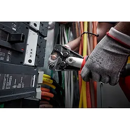 The Milwaukee® 750 MCM Cu/Al Jaw produces the fastest installation-ready cuts. The superior blade geometry effortlessly cuts through 750 MCM Cu and 1000 MCM Al in under 3 seconds. The anti-spreading open jaws deliver the most compact 750 MCM Cu cutting solution which allows you to cut effortless in the tightest panels without looping. Use with the 2679-22, M18™ FORCE LOGIC™ 600 MCM Crimper.