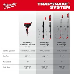 Milwaukee TRAPSNAKE™ 4 ft. Urinal Auger offers a breakthrough in protection, ease of use, and durability over every urinal auger that exists today. This tool features several industry-firsts, including a fixed rubber boot for maximum porcelain protection, an integrated locking mechanism that holds the cable in place for easy telescoping extension, and replaceable cables to maximize the longevity of the tool. As part of the TRAPSNAKE™ Porcelain Auger System, users can attach the TRAPSNAKE™ 4 ft. Urinal Auger to the M12™ TRAPSNAKE™ driver, the first powered unit optimized for the challenges of porcelain fixtures. This urinal snake delivers power and speed to work through tough clogs in tight traps but has optimized electronics that protect the fixture from the auger and allow the user to feel when engaged with a blockage.