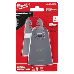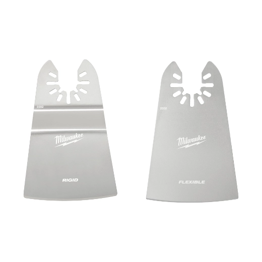 Our Universal Fit OPEN-LOK™ 2" Rigid and 2" Flexible Scraper 2 Piece Combo Pack is for Oscillating Multi-Tools. These MILWAUKEE® multi-tool scrapers have a solid stainless steel construction with a sharp ground edge, ideal for quick removal of paints, adhesives, and sealants. This multi-tool blade set includes both a Flexible Scraper and a Rigid Scraper. The new shapes offer you a wider scraping width and longer shape than the previous scrapers for added versatility.