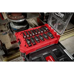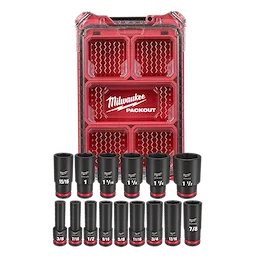 Our SHOCKWAVE Impact Duty™ Socket Set features the boldest, longest-lasting markings and extreme impact durability in high torque applications. The stamped and ink-filled size marking enables you to select the right socket every time throughout the life of the socket. Engineered with high-strength forged steel for optimized performance in heavy-duty applications. The non-slip hex geometry prevents fastener rounding. The milwaukee dual-hole design and ring groove allow for easy socket attachment and removal. Sets can be kept organized in the included MILWAUKEE® PACKOUT™ Compact Organizer with a clear top for easy identification of parts at a glance. The Compact Organizer is part of our PACKOUT Modular Storage System, allowing for customization of storage systems to easily transport and organize tools and accessories. All Milwaukee SHOCKWAVE Impact Duty ™ Sockets and Extensions are backed by Milwaukee's Lifetime Guarantee and meet ASME industry standards.