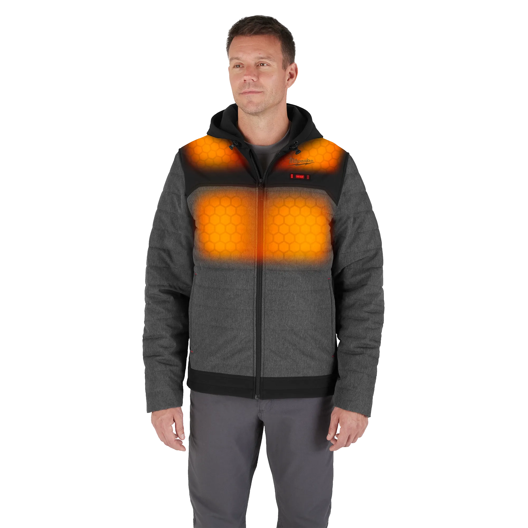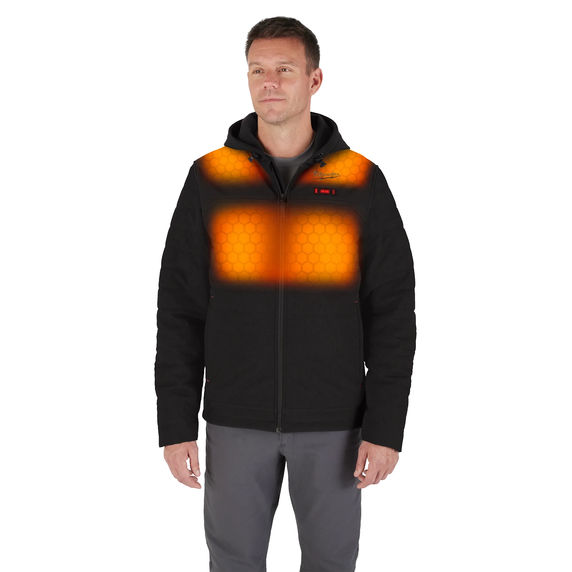 Our M12™ Heated AXIS™ Jacket delivers HEAT BUILT FOR LIGHTWEIGHT DURABILITY. Powered by Milwaukee’s NEW HEXON HEAT TECHNOLOGY™, this jacket STAYS WARMER FOR LONGER in all temperatures, delivers the FASTEST HEAT UP TIME and offers GREATER HEAT COVERAGE throughout the garment. Whether facing freezing outdoor temperatures or navigating spaces with minimal heat indoors, this jacket adapts to its environment to deliver effective heat in any condition. By integrating HEXON HEAT TECHNOLOGY™ and 2X more insulation, optimal comfort and mobility are achieved. The hidden battery pass-thru pocket allows for front or back battery placement, increasing versatility depending on the situation. With ground-up developed AXIS™ ripstop fabric, this MILWAUKEE® jacket provides robust protection against the elements without sacrificing movement. Our Milwaukee® Heated Gear is developed in collaboration with feedback from users across the trades through continuous jobsite research.