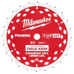 Our Thick Kerf Framing Circular Saw Blades offer the straightest cuts and longer life in wood. These blades are designed with a High Performance Thick Kerf, allowing you to get the straightest rip cuts and ultimate stability in softwoods, hardwoods, lumber, and laminated woods. The diamond venting pattern allows for cool cutting and improved chip ejection while the cobalt-infused carbide teeth stay sharper longer. Our Thick Kerf Framing Blades are optimized for the most powerful cordless saws, providing strong performance even at the highest RPMs.