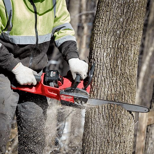 The Milwaukee® M18 FUEL™ 16" Chainsaw delivers the power to cut hardwoods, cuts faster than gas, and delivers up to 150 cuts per charge. The unit is designed to meet the performance, durability and ergonomic needs of professional landscape maintenance, power utility, and the installed M18™ user. M18 FUEL™ technology allows the unit to reach full throttle in under 1 second providing ultimate control and productivity.Loading Results