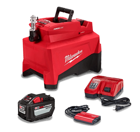 FORCE LOGIC™ is engineered to not only improve upon, but fundamentally change the way high-force tools are used in the field. Through thoughtful design focused on workflow, each tool simplifies a complicated process to deliver the best user experience of its kind. Whether it’s a knockout system that can be set-up without the weight of the tool for the easiest way to punch, or the 10,000psi Hydraulic Pump that is 80% smaller and 75lbs lighter for the easiest set-up, FORCE LOGIC™ always delivers the smartest way to work.Our M18™ FORCE LOGIC™ 10,000psi Hydraulic Pump is the Easiest Way to Power Hydraulics. The cordless pump is fully compatible with all existing 10,000psi rated hydraulic hoses and heads and features ONE-KEY™ Technology. The pump delivers the easiest set-up and is up to 80% smaller and 75lbs lighter than gas units. PFM™ (Predictive Force Monitoring) provides instant pressure verification and Wireless Mode creates a physical air gap between the operator and a potentially live electrical line.