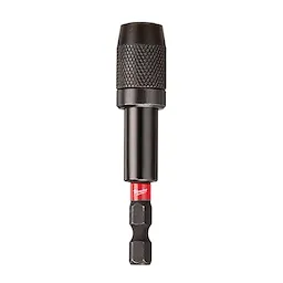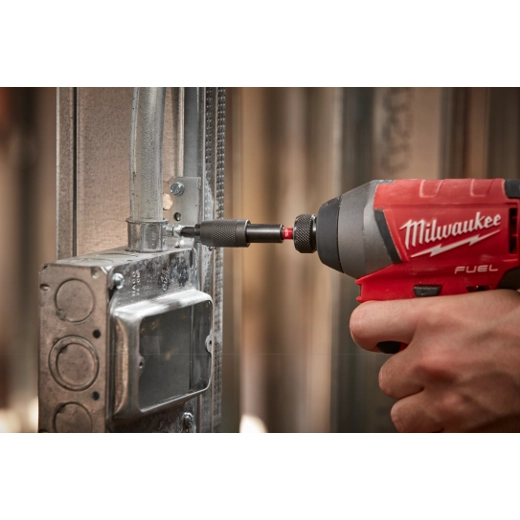 MILWAUKEE® SHOCKWAVE™ Impact Duty Locking Bit Holders are engineered to be the most durable, strongest locking bit holders on the market. The intuitive auto-locking design fits all inserts and 1/4" hex bits and the small-profile quick release collar allows for easy one-handed bit tip changes. The new locking bit holders feature two magnets to maximize magnetic transfer and holding power to the fastener and prevent drops. As with all SHOCKWAVE™ Impact Duty Accessories, each bit holder features an optimized SHOCK ZONE™ geometry to provide up to 30X longer life and absorb 3X more torque to prevent breakage.